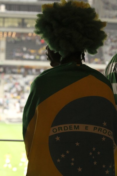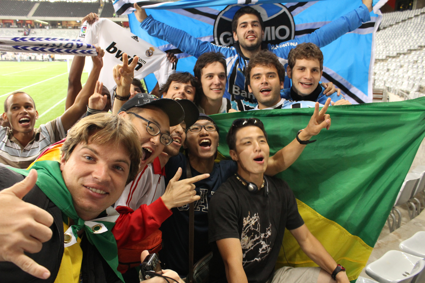 Fiz uma pequenina concessão de publicar a foto da galera brasileira com a bandeira do Grêmio ao fundo. O time não é do Rio de Janeiro, então tudo bem, senão… (risos)