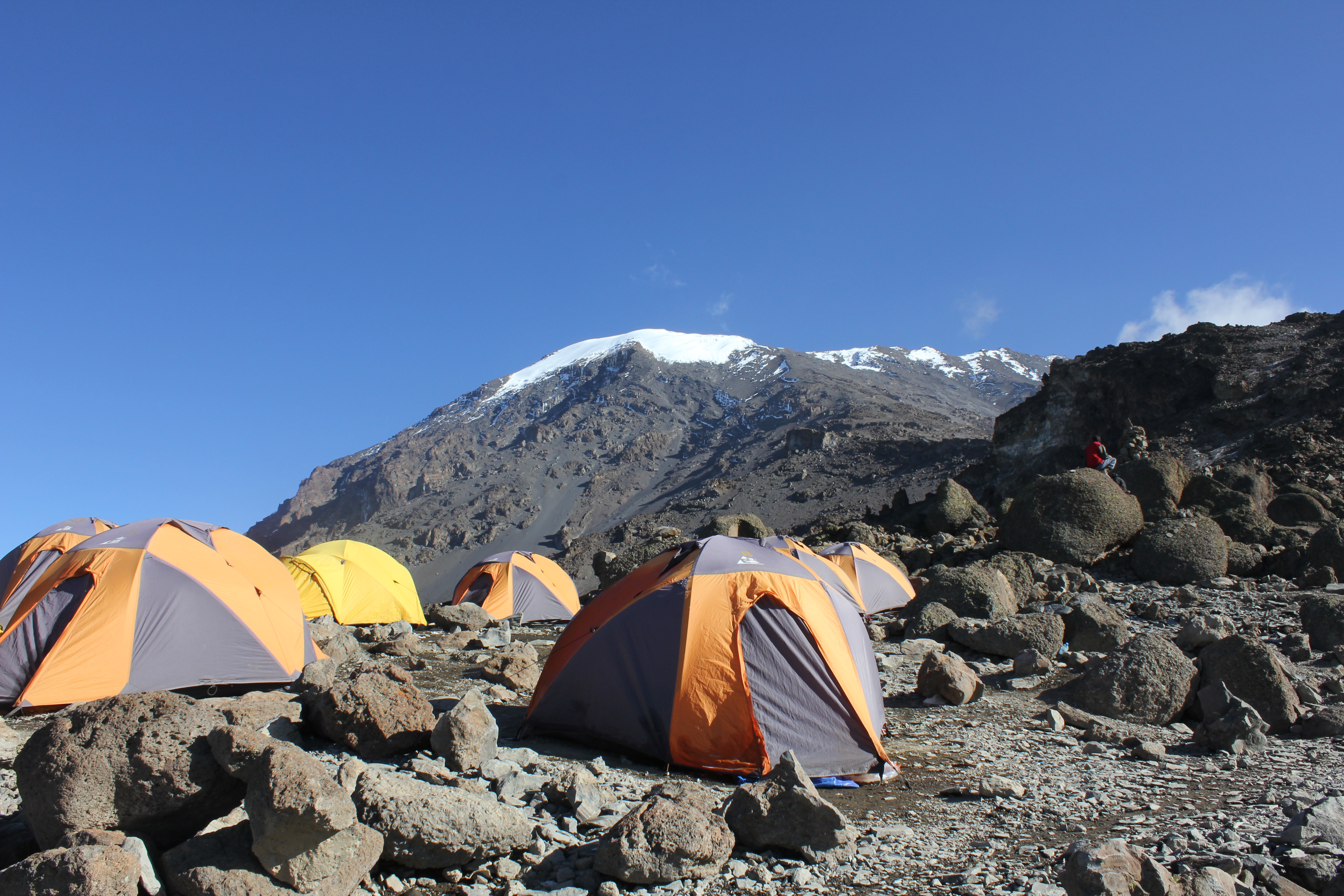 Eu optei pela rota Machame. O primeiro dia inicia-se em 1.800 metros de Machame Gate e sobe-se até Machame Camp a 3.000 metros. O segundo dia, sobe-se até 3.820 metros em Shira Camp. O terceiro dia, sai-se de 3.820 metros, sobe-se até 4.600 metros em Lava Tower e depois desce-se a 3.972 metros em Barranco Camp. Este é considerado o melhor dia para propiciar uma boa aclimatação, pois o corpo é levado à altitude superior (4.600 metros) e depois inferior (3.972 metros), o que amplia a possibilidade de adaptação. O quarto dia, também por um trajeto de subidas e descidas, chega-se, por volta das 16hs, ao campo-base Barafu Camp, a 4.660 metros.