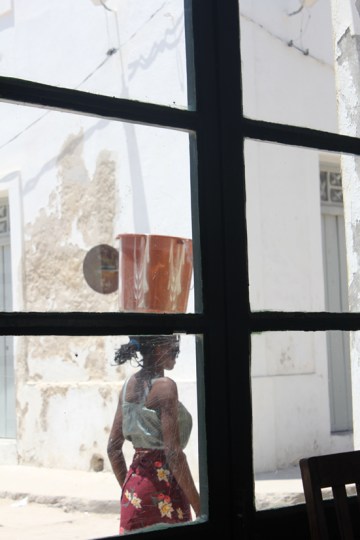 A brisa suave que corre nas ruas da Ilha de Moçambique tornam-a aprazível. O melhor para desfrutar a ilha é perambular pelas ruas, apreciando suas ruínas e interagindo com os residentes. Meus dois dias de estadia foram super agradáveis. Conversei com as pessoas. Brinquei com as crianças. Fotografei. Fotografar pessoas é uma excelente forma de sociabilidade. A maioria dos moçambicanos adoraram posar para as minhas lentes. As crianças divertiram-se à beça. Depois das primeiras fotos, quando elas se viram no LCD da câmera, pediam para serem fotografadas sem parar. Mil caras e caretas. Algumas vezes, infelizmente, elas pediram dinheiro. Para driblar isto, a forma que eu encontrei foi dar a câmera nas mãos das crianças, para que elas me fotografassem. Pronto! Daí, foram milhares de cliques sem fim… E esqueceram do dinheiro. Fotografar virou uma lúdica brincadeira de infância. Para mim, também! Na ilha, há poucos fotógrafos que fazem o retrato da população, mas por algumas dezenas de meticais (dinheiro local) e com máquinas compactas de filme. A loja de revelação dista 400 Km, o que encarece e dificulta o processo. Percebi que a maioria dos locais não possuem um retrato para compor seu álbum de família. Gravei fotos num CD e entreguei para algumas das pessoas fotografadas. Pelo menos, elas poderão imprimir algum dia. Despedi-me da Ilha de Moçambique com vontade de voltar e fazer uma documentação fotográfica, tanto para eles como para mim. Foi um prazer enorme fotografá-los. Super receptivos e simpáticos.