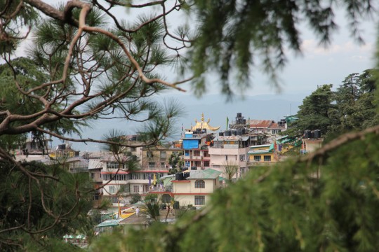 Chegar em Dharamkot foi como chegar ao oásis, a quietude e o frescor das montanhas, após o calor, o agito, o barulho de cidades de Varanasi e Amritsar. De fato, as buzinas do rickshaw já estavam me enlouquecendo (risos). Em McLeod Ganj, as buzinas também soam alto por lá, mas apenas quinze minutos de caminhada subindo as colinas e chega-se à pacata Dharamkot, com guest houses no meio do verde.