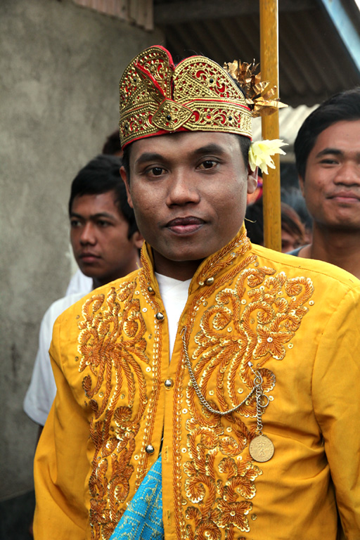 Grata surpresa na ilha de Lombok foi a cerimônia de casamento Nyongkol. Um desfile pelas ruas ao som de tambores. Participei de três casamentos. Os noivos estão sempre sérios, mas a população se diverte com a festa, vem acompanhando a festiva procissão de casamento dançando e divertindo-se. Todos querem ver o noivo e a noiva.