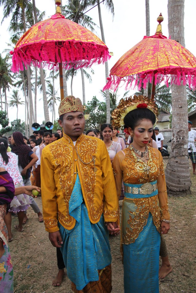 De volta à vila de Gerupuk, Lombok, voltando ao Nyongkol, as roupas dos noivos são do mesmo estilo das vestimentas dos nobres na época dos reinados que datam do século VII. Somente aos nobres era permitido vestir tais peças, usadas como signos de diferenciação entre nobreza e casta inferior.