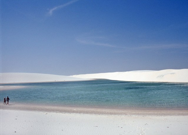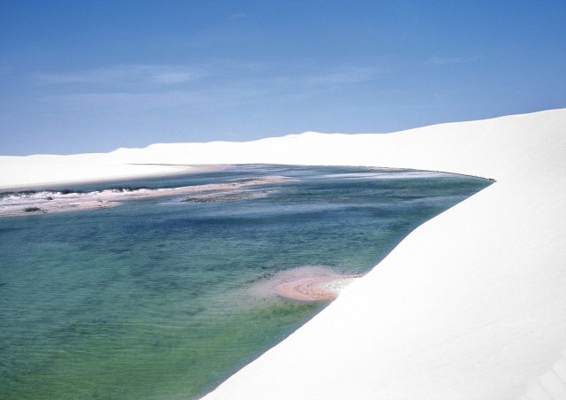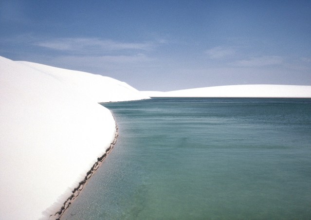 Quem não gosta de se banhar em águas cristalinas e frescas como as que escorrem das cachoeiras? Programa revigorante e refrescante. Em um dia daqueles, ensolarado, com céu azul de brigadeiro, então… torna-se diversão ainda mais saborosa. Imagine todos esse deleite tendo como cenário uma praia deserta, com esparsos coqueiros. Mergulhar nas lagoas dos Lençóis Maranhenses é exatamente assim: um banho fabuloso em águas doces, envolto por areias alvas e reluzentes, sob calorosos raios solares, na imensidão desse tão particular deserto brasileiro – pontilhado de incontáveis oásis. Desfruta-se a sensação de estar em uma praia isolada, com o frescor das águas das montanhas. Beira o inacreditável!