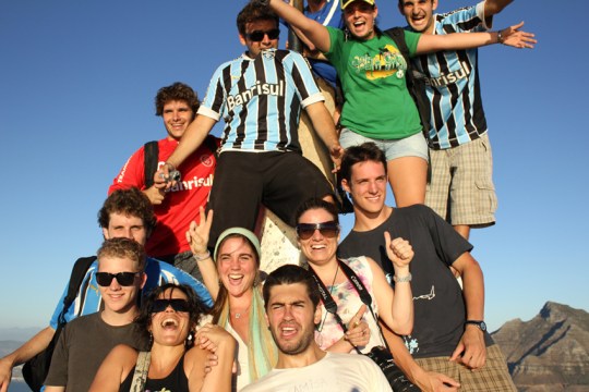 Fiz uma pequenina concessão de publicar a foto da galera brasileira com a bandeira do Grêmio ao fundo. O time não é do Rio de Janeiro, então tudo bem, senão… (risos)