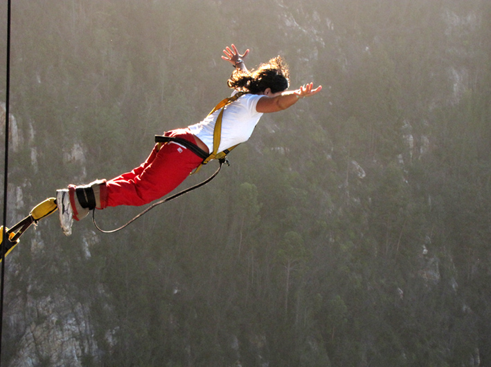 Mais alguns dias na estrada e chegamos à famosa ponte onde está o maior bungee jump comercial do mundo. São 216 metros de altura e 180 metros de queda livre. Alguns percorrem a Garden Route somente para pular da ponte. Eu estava na dúvida se iria saltar. Pulei. Adorei. Para mim, foi uma experiência plácida. Meus colegas de viagem brincaram muito comigo: